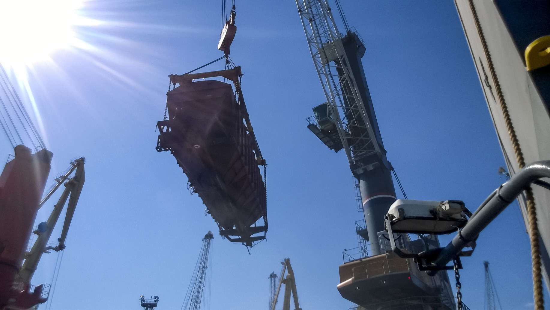 80トンラフタークレーンを投入する大規模作業に加え、既存架台との適合調整が必要でした。
