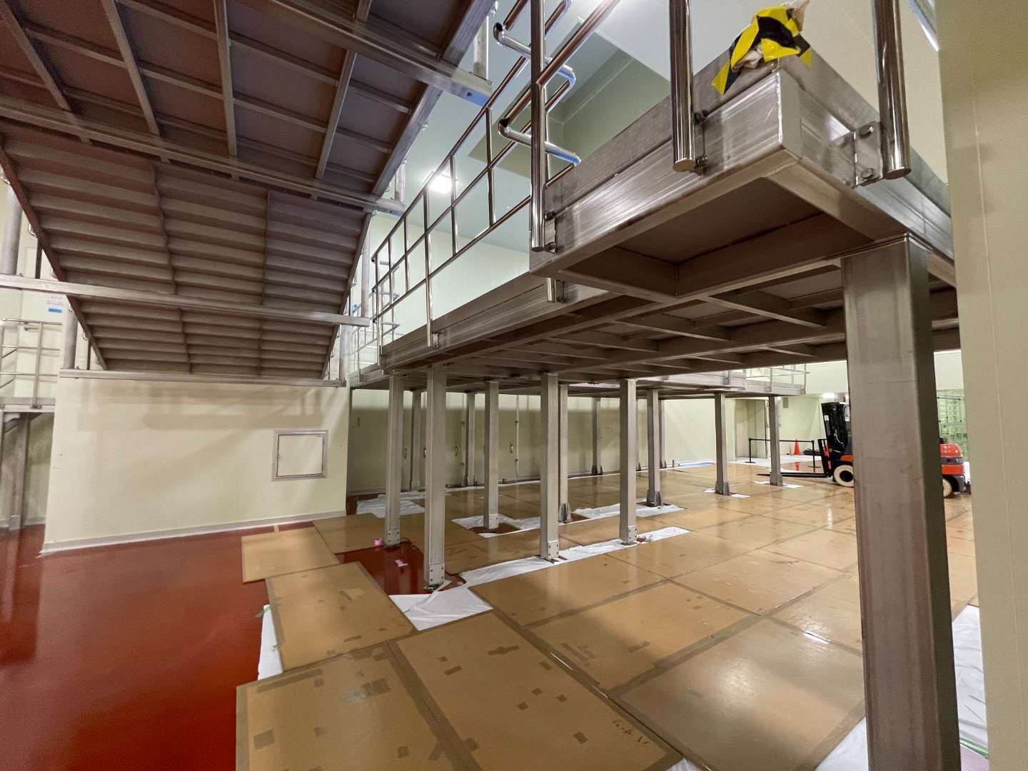 中二階ステージは後に設置される設備と連動するため、極めて高い精度での組立が求められました。