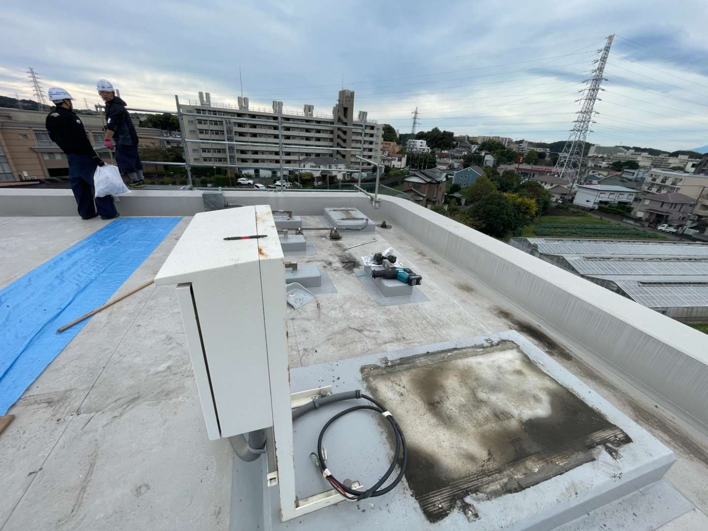 屋上には防水シートが施工されており、重量物の解体や移動によってシートを傷つけるリスクがありました。