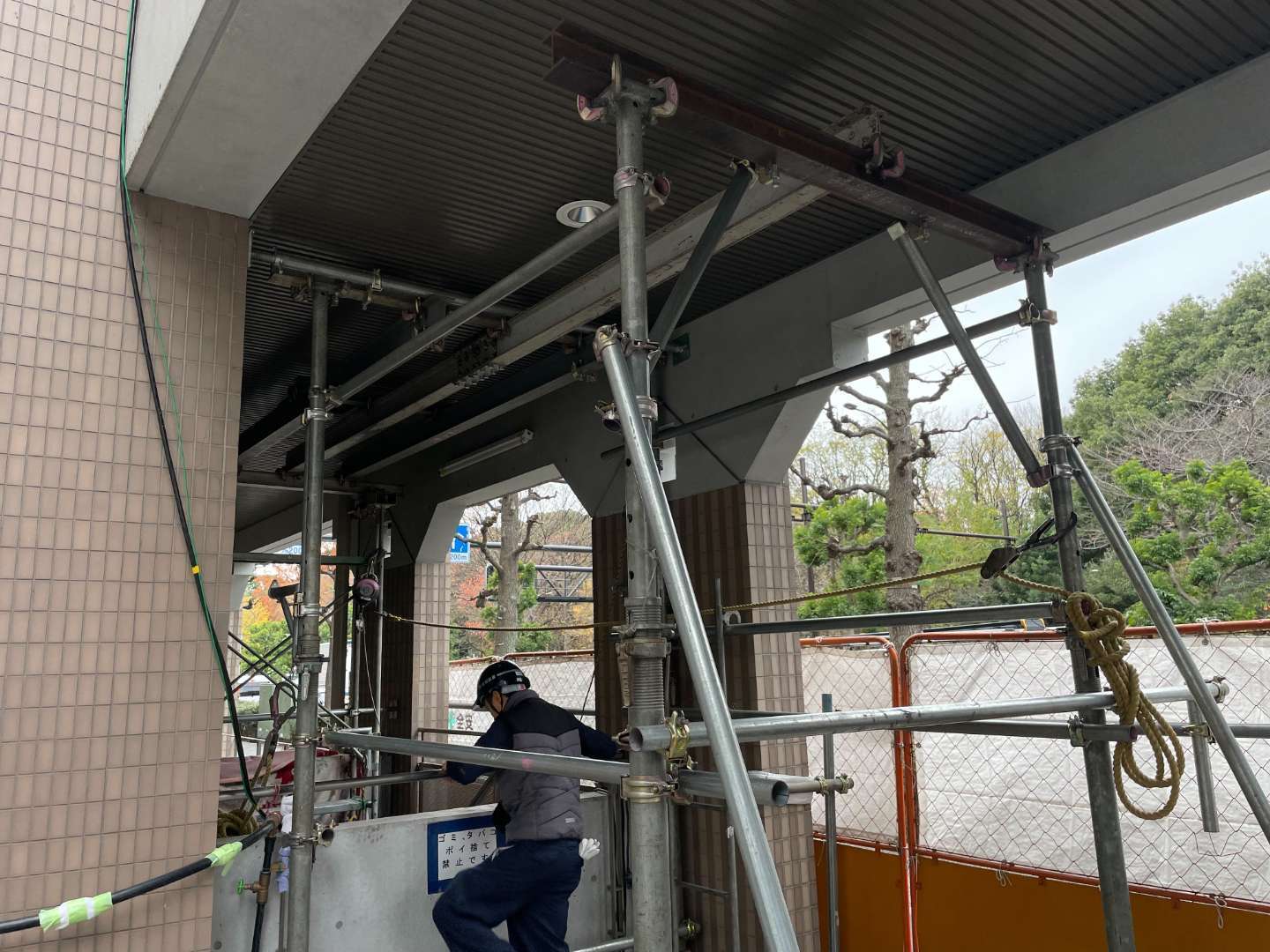 地下へ通じるマシンハッチを開放しての作業となるため、資材や作業員の落下事故を防ぐ厳重な安全対策が必要でした。